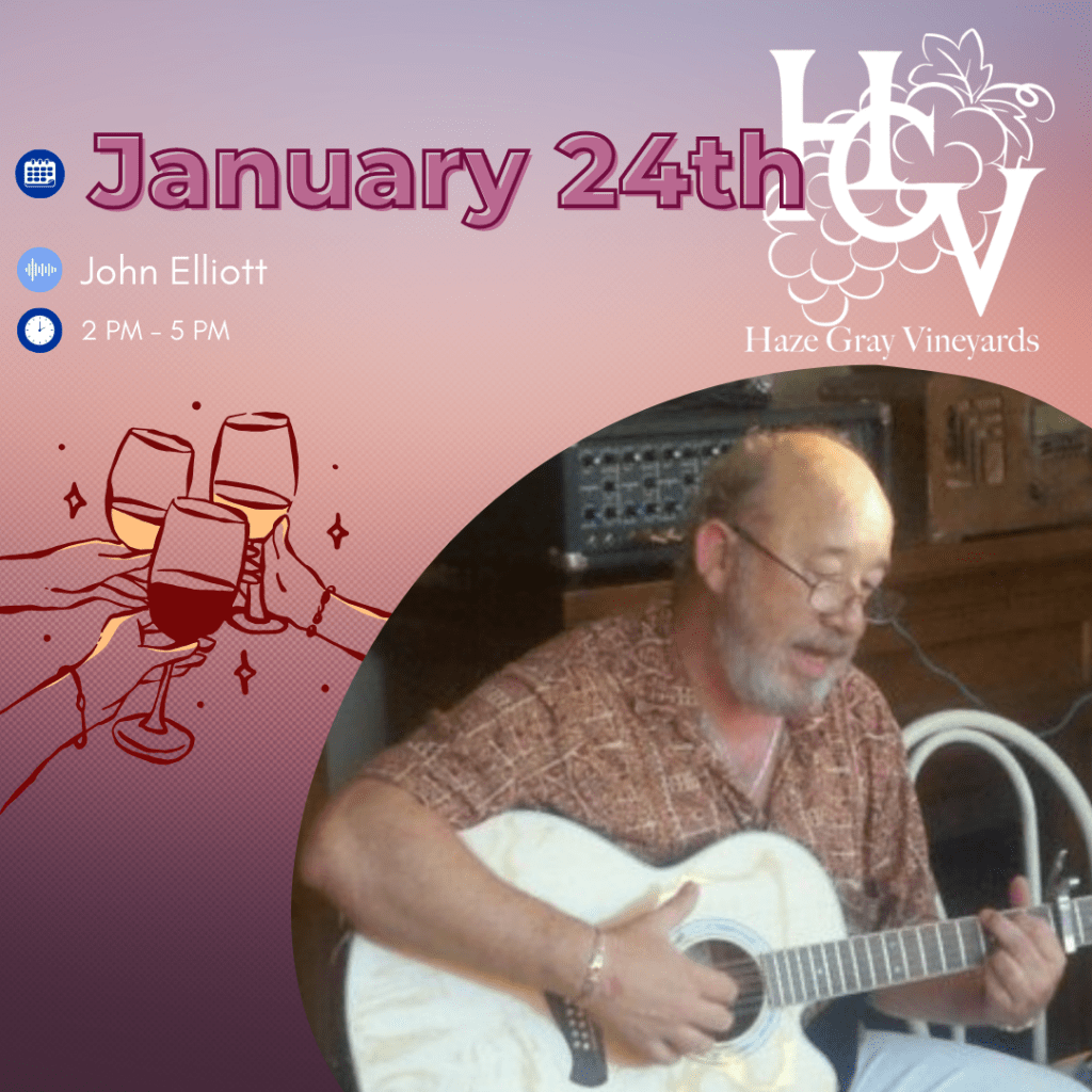 Come hang with us Saturday, January 24 | 2:00–5:00 PM for live music with John Elliott—bringing a great mix of ’70s favorites, plus folk and Americana! ✨🎸 Grab a glass, relax, and enjoy an easygoing afternoon in the vineyard.