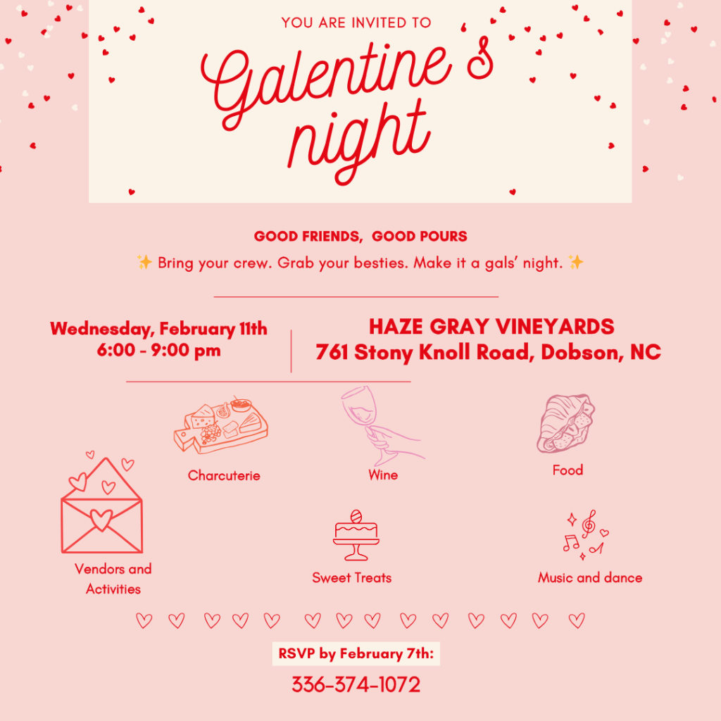 Haze Gray Vineyards is hosting our first-ever Galentine’s Night — and you’re invited. Bring your crew. Grab your besties. Make it a girls’ night.