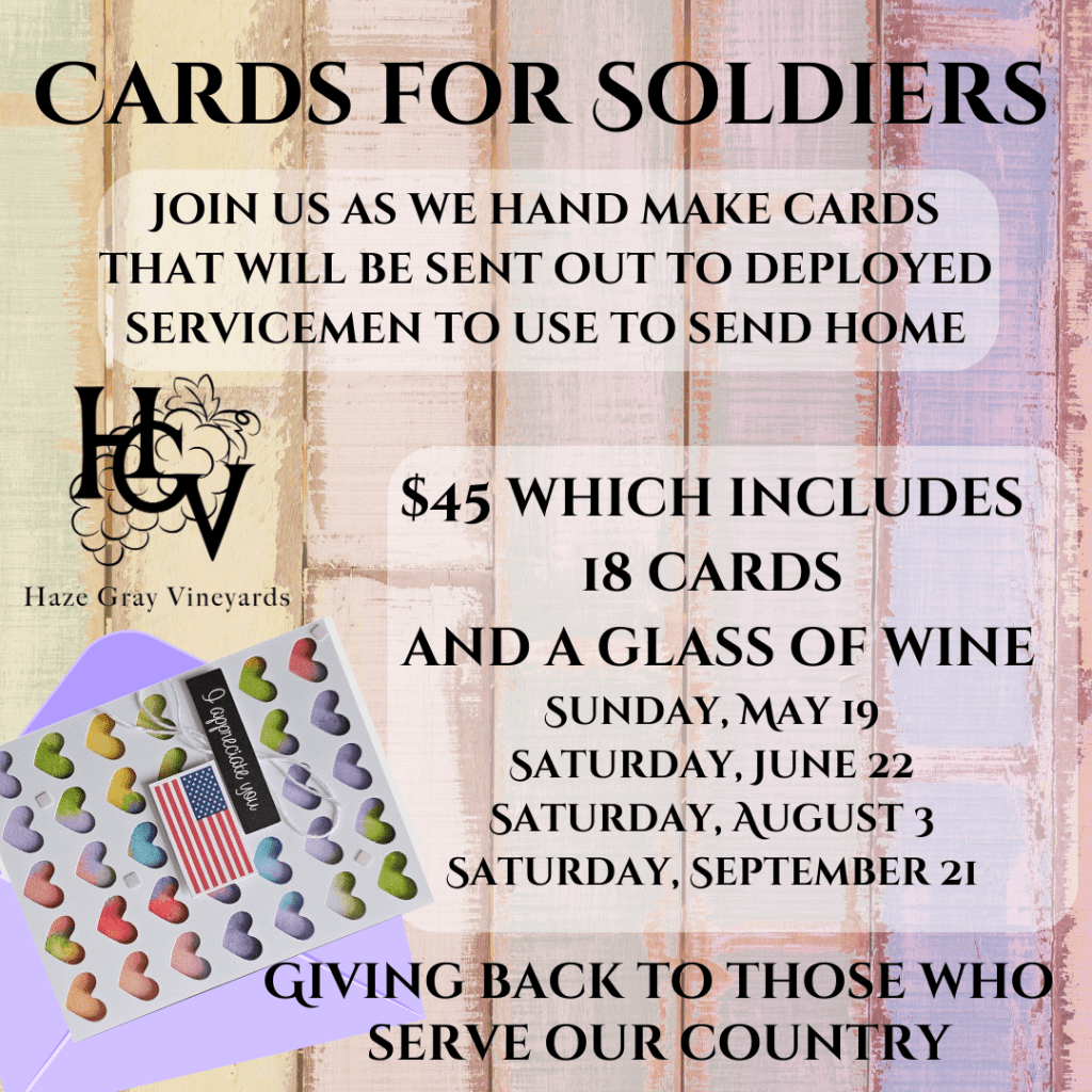Email Becky@HazeGrayVineyards.com or call the tasting room 336-374-1072 for reservations. Space is limited.